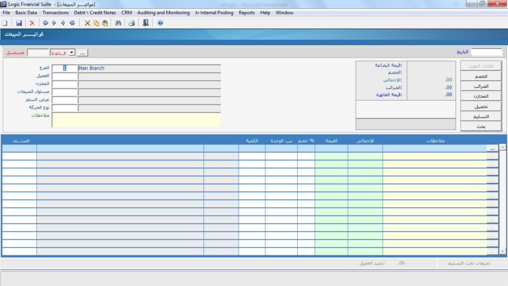 تتميز شاشة فواتير المبيعات في مجموعة برامج لوجيك بالدقة والمرونة المتناهية . حيث تدعم هذه الشاشة ما يلي :